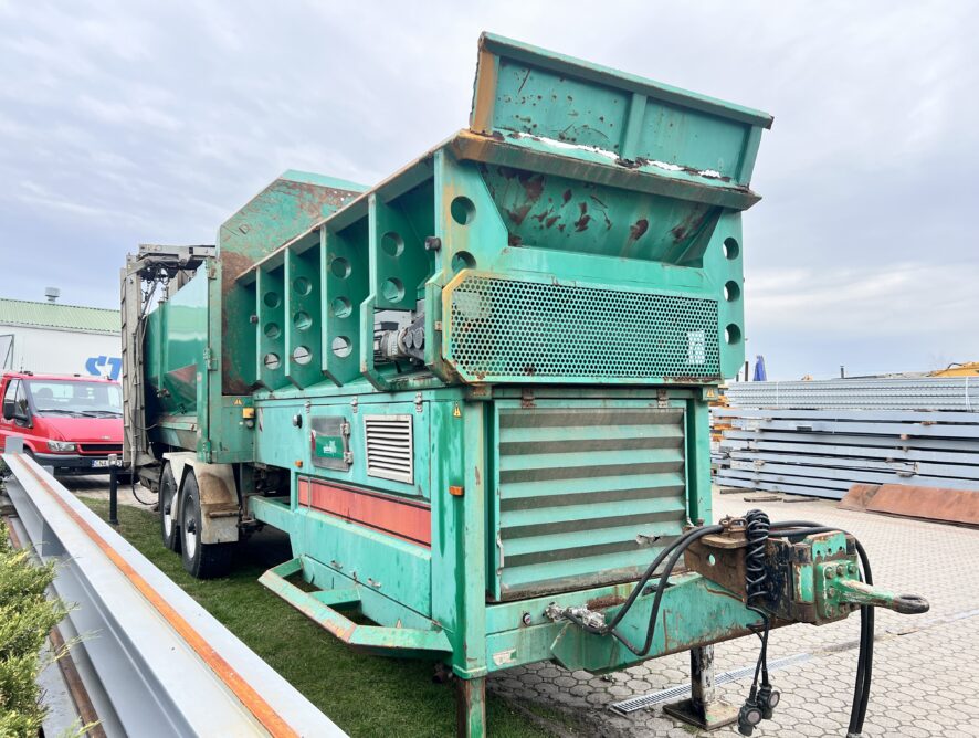 – rok produkcji 2010 – 14 600h – waga 19t – silnik Perkins 4 cyl. 132KM + generator prądu – wydajność do 200m3/h – możliwość rejestracji – sito 40x40mm – nowy silnik i generator w 2017 przy 9200h – powierzchnia przesiewania 33m2 – długość bębna 550cm – 4x hydrauliczne stabilizatory – podwozie kołowe z hamulcami – możliwość pracy z zewnętrznego źródła prądu – w ofercie Doppstadt SM518 |