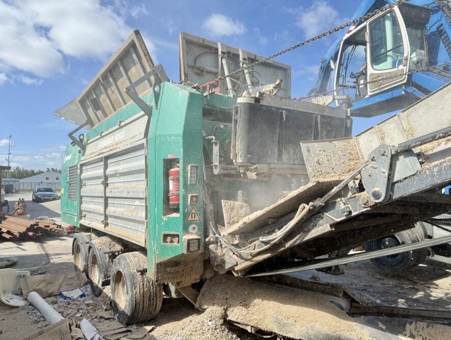 – rok produkcji 2021 – 630h – waga 13.5t – silnik Volvo Penta 175KM – separator magnetyczny – prędkość wałów 11-45rpm – sterowanie radiowe – wały do betonu – wydajność do 100t/h |